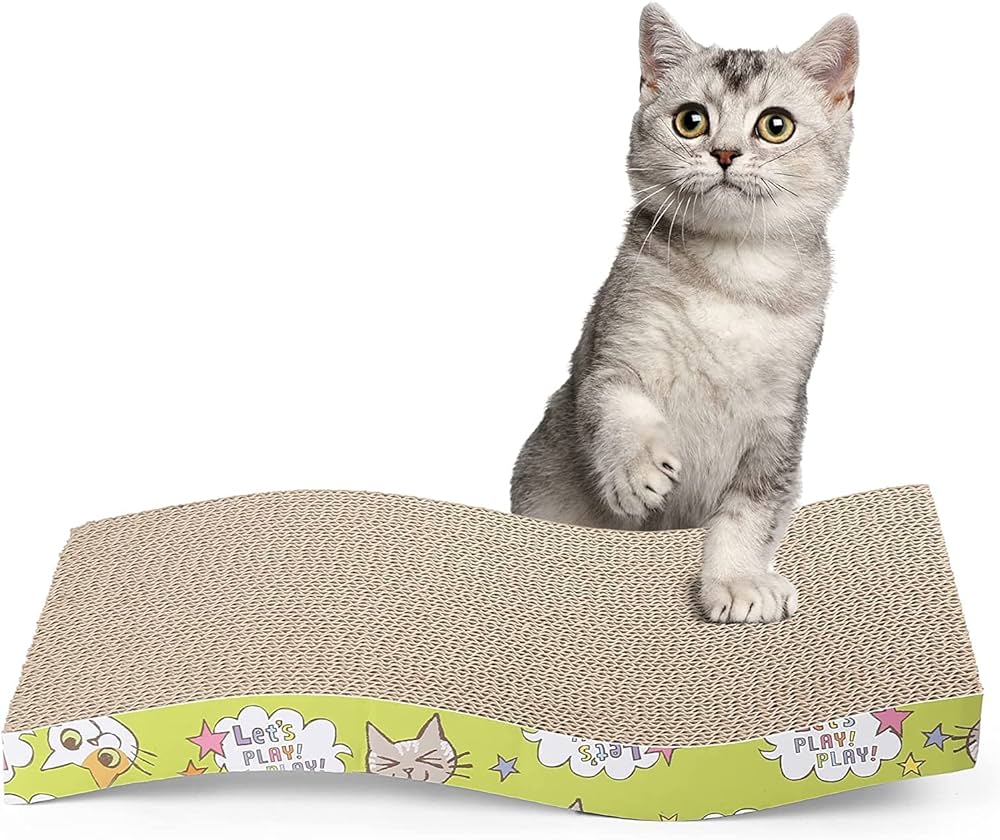 • S Shape Wave Design: Wave design cat scratching pad makes for easy scratching and for cats to contour, flex and stretch their bodies. It is also idea for claws maintenance, exercise, muscle toning, and stress relief