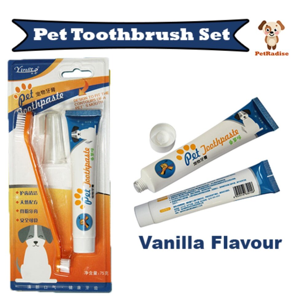 A set of toothpaste and double-end toothbrush and finger toothbrush for your loved pets.