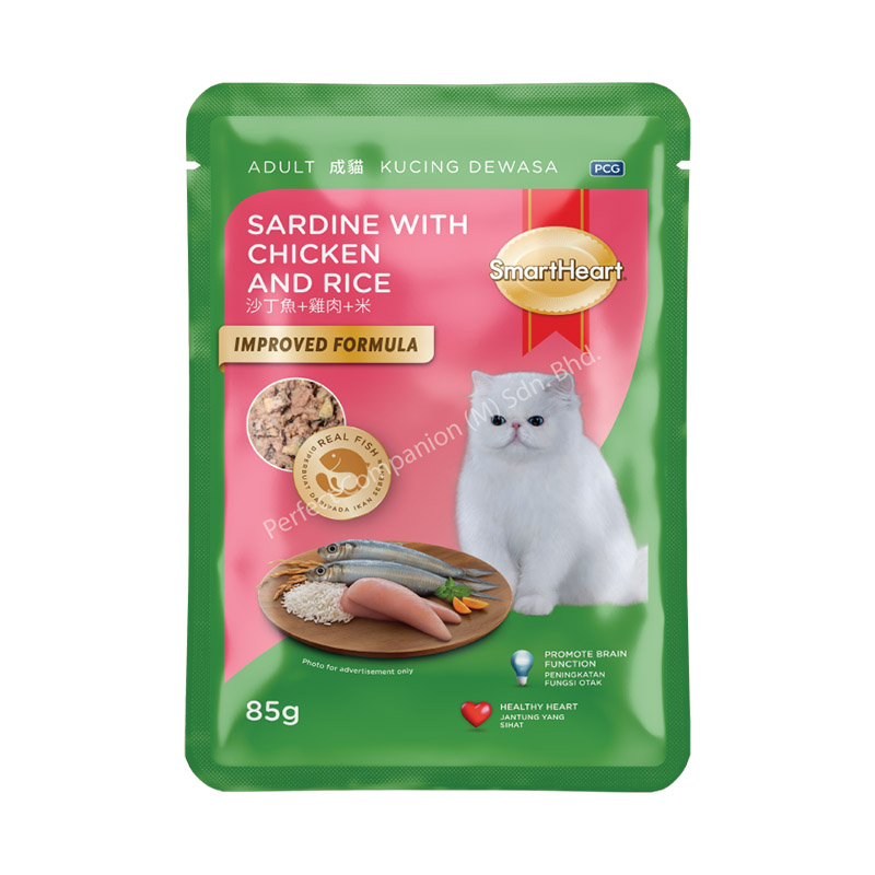 Elevate your cat’s dining experience with SmartHeart Cat Pouch – Sardine With Chicken & Rice. Crafted for feline gourmands, this 85g pouch offers a tantalizing blend of flavors and unbeatable nutrition.