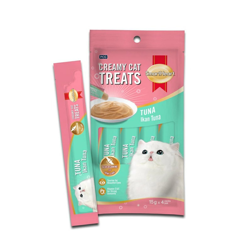 Smartheart Creamy Treat Tuna is the Mouth Watering Treat for Your Kitty. Smartheart Creamy Treat provides plaque protection and ensures fresh breath. Collagen Care Formula ensures healthy skin and beautiful fur. Included Prebiotics ensures good digestion and Glucosamine ensures good joints. Taurine helps increasing Eyesight and Vitamin C & E ensures strong Immunity. Smartheart Creamy Treats indulge your Kitty in eternal happiness and unlimited enjoyment.