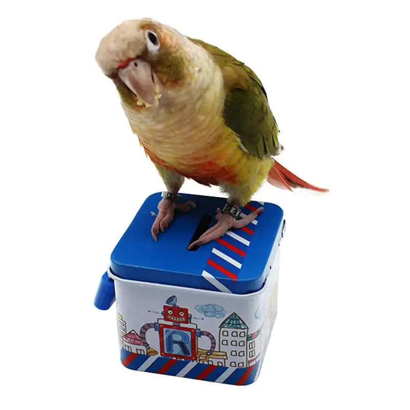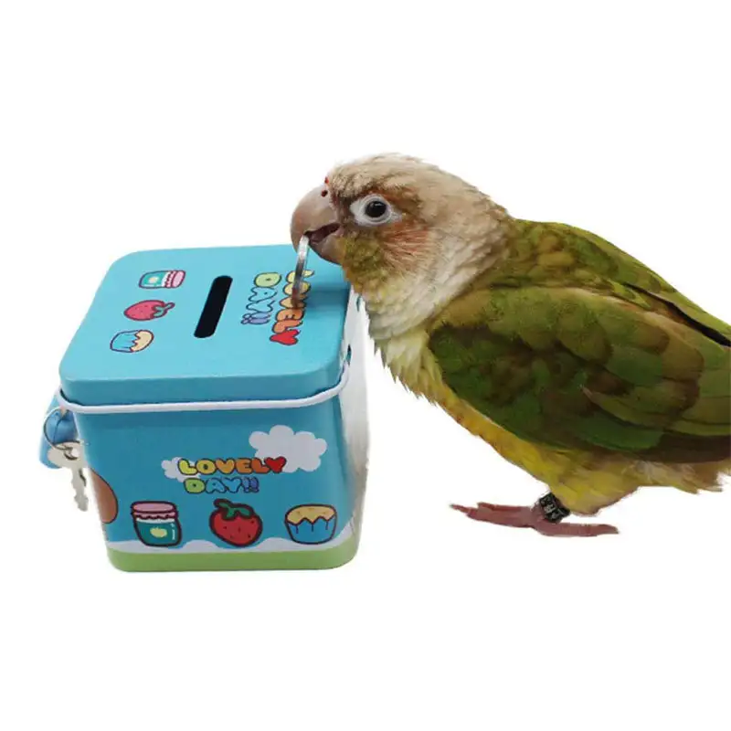 Bank Box Bird Toys, Coin Box Training Parrot Toys-Trick Prop Educational Box-Interactive Toys for Cockatiel Love Bird Quaker Conure - 1Pcs