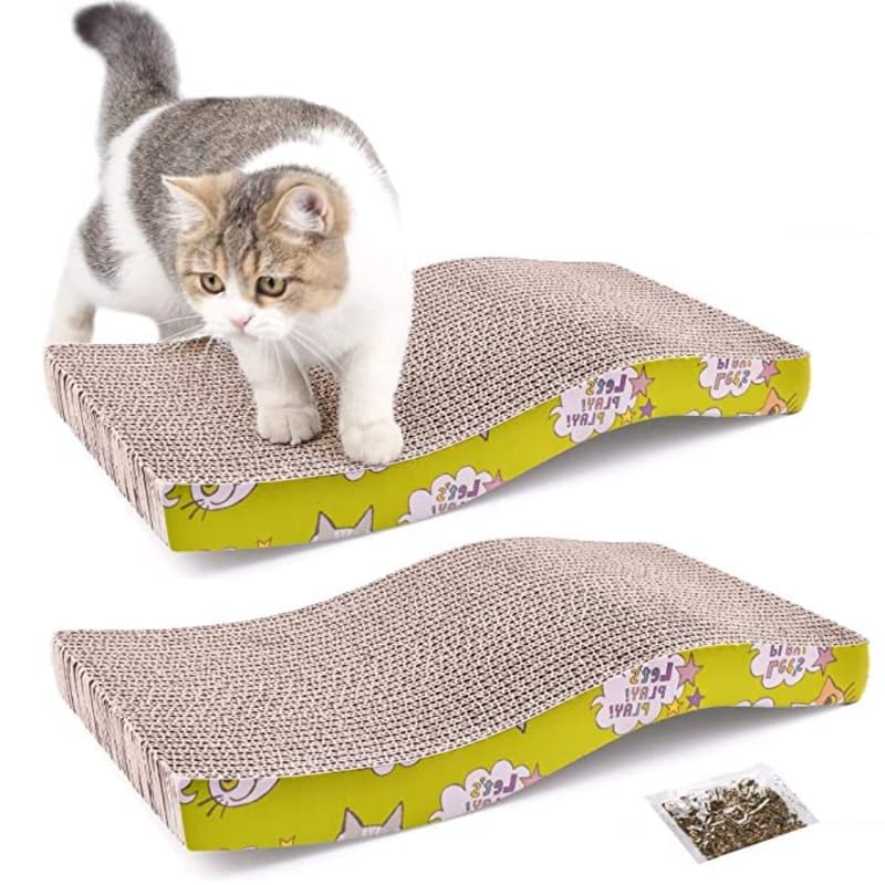 • Catnip Free & Upgraded : Included with the scratching cardboard is an added bonus of bold catnip. The high density upgraded cardboard prevents small pieces of cardboard from breaking off when scratched and helps keeps the catnip on the board