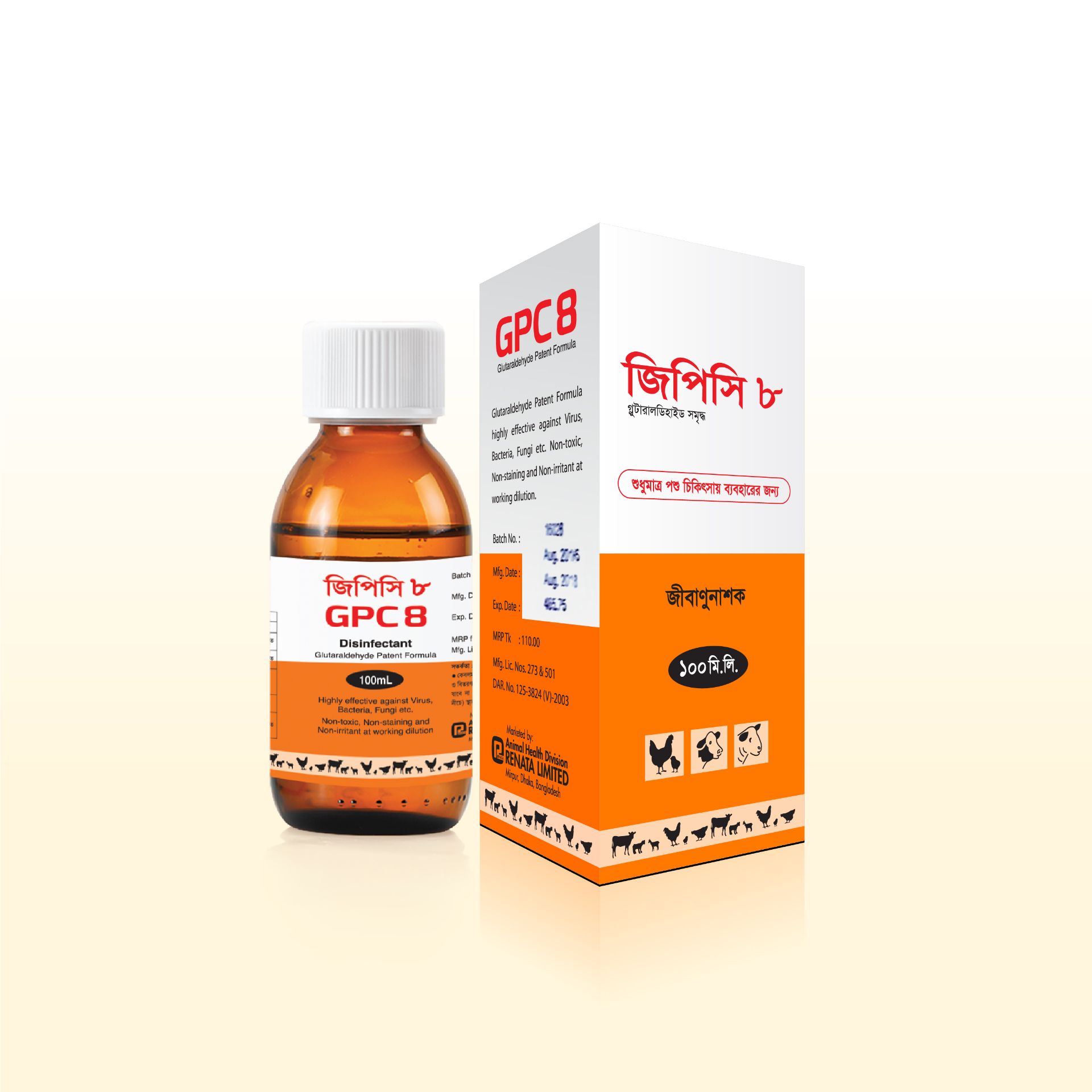 Composition: Glutaraldehyde-12%, Quaternary ammonium compound-4%, Non-ionic surfactant 8%, Phosphoric acid=0.8% & water-qs.