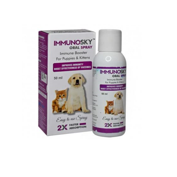 ImmunoSky Oral spray is a clinically proven product to boost your pet’s immunity and fight against pathogens (diseases causing bacteria, viruses, or microorganisms). ImmunoSky oral spray helps to improve the overall health of puppies and kittens.